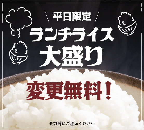 【LINE友だち限定】平日限定!ランチライス大盛り🍚無料クーポン配信中🎁